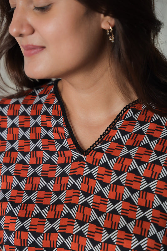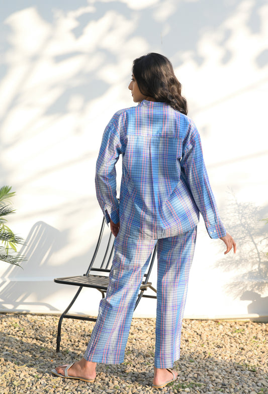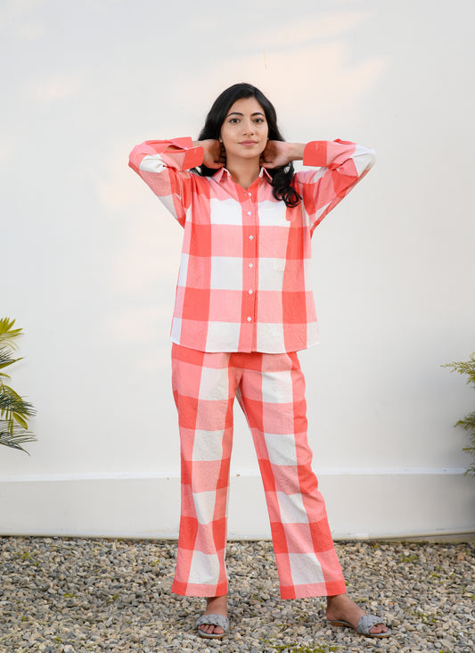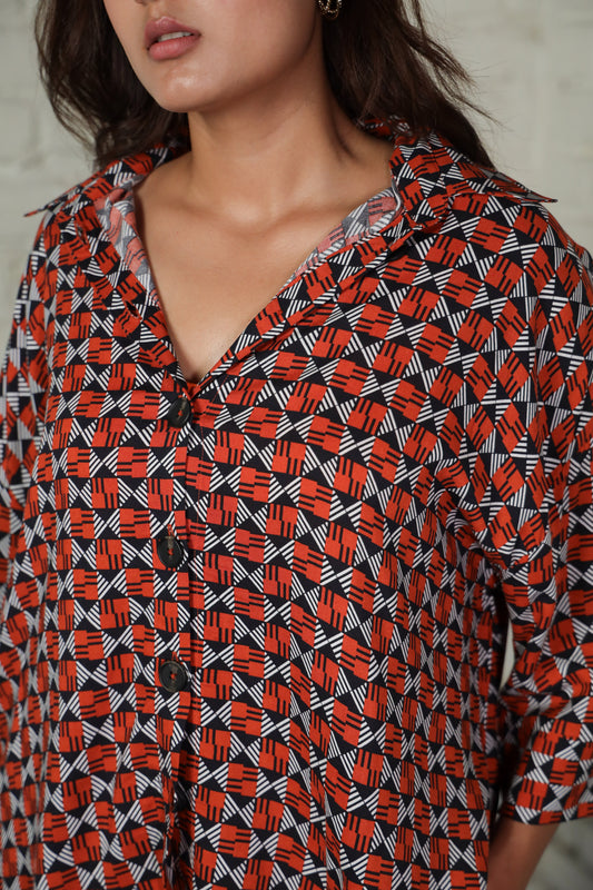 Chess Over Sized Shirt + Pyjama Cotton Rayon Co-ords
