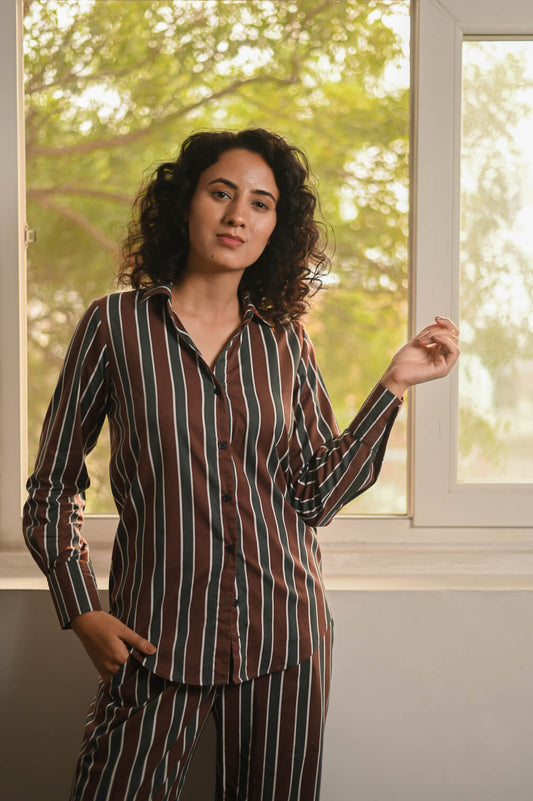 Liberty Stripe Pure Cotton Shirt & Pyjama Set