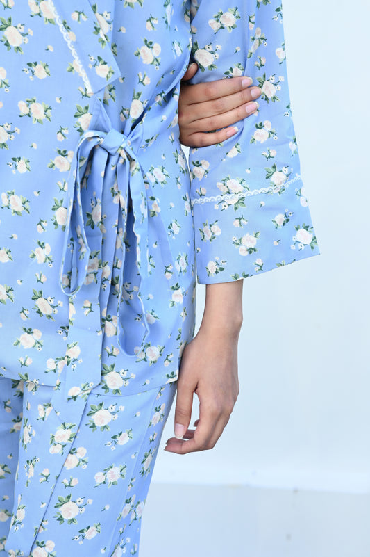 Blue Palm Oversized Shirt + Pyjama Co-ords