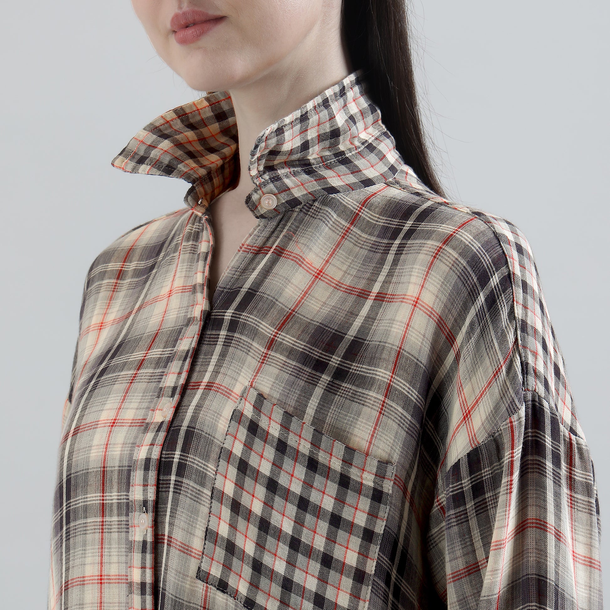 - Button-down shirt with contrast check pocket